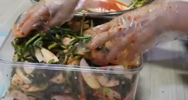 잎 부분에도 양념이 잘 스며들도록 조심스럽게 섞어주세요.